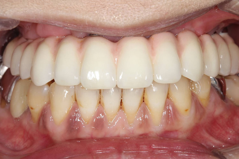 | 治療内容 | 上顎 インプラントフィクスチャー6本・ 上部構造11歯・サイナスリフト 下顎 インプラントフィクスチャー3本・ 上部構造4歯 |
